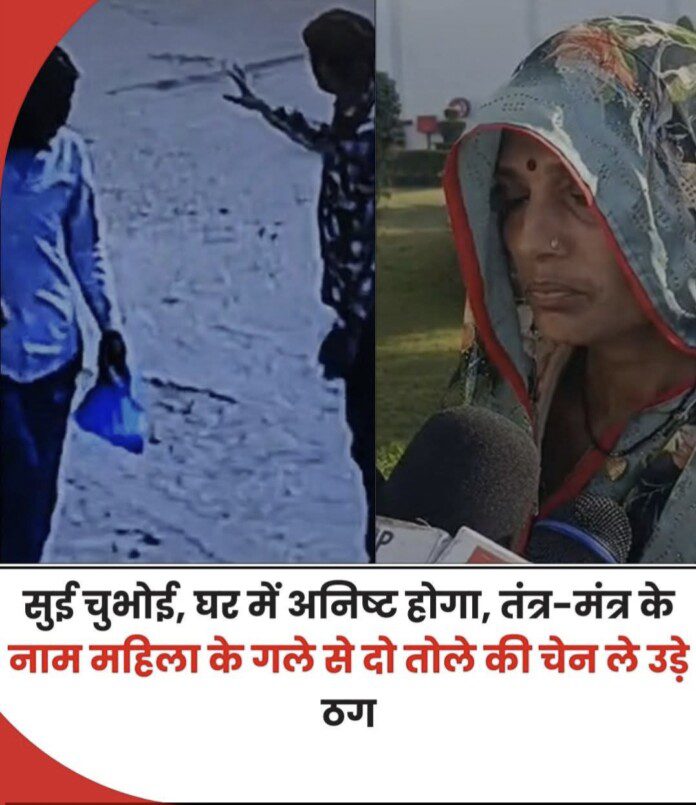 पीड़िता के अनुसार, आरोपियों ने पहले उसकी कमर में सुई चुभोकर उसे भ्रमित किया, फिर परिवार पर “अनहोनी” होने का डर दिखाया। घबराई महिला से उन्होंने 2 तोले की सोने की चेन उतरवा ली और कथित ‘उपाय’ के नाम पर उसे 10 कदम पीछे चलने और माता का जयकारा लगाने को कहा। जैसे ही महिला पलटकर देखती, आरोपी चेन लेकर फरार हो चुके थे।