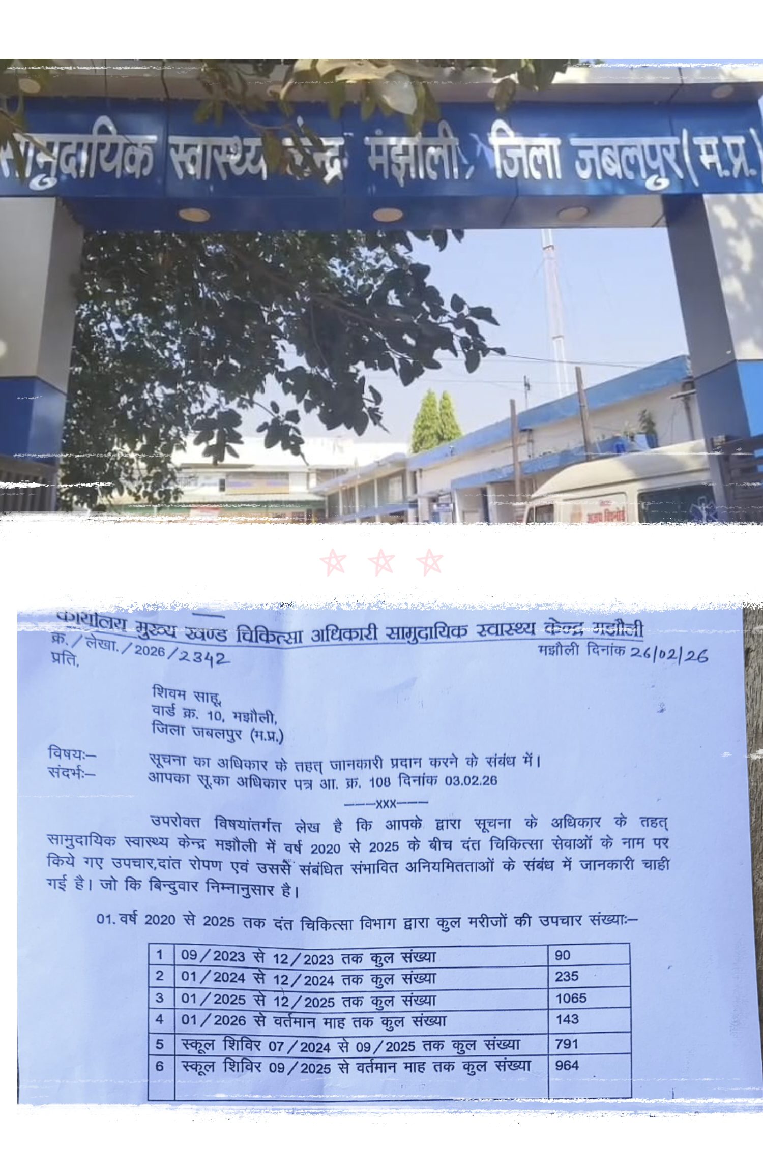 सामुदायिक स्वास्थ्य केंद्र मझौली में दंत चिकित्सा सेवाओं को लेकर दायर सूचना का अधिकार (RTI) आवेदन के जवाब ने नए विवाद को जन्म दे दिया है।