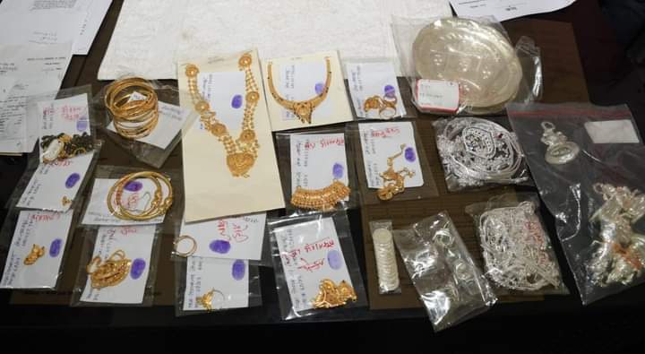 *जप्ती-* 165.200 ग्राम सोने के एवं 877 ग्राम चांदी के जेवर एवं मूर्ति तथा घटना मे प्रयुक्त कार कीमती 13 लाख 35 हजार रूपये के।