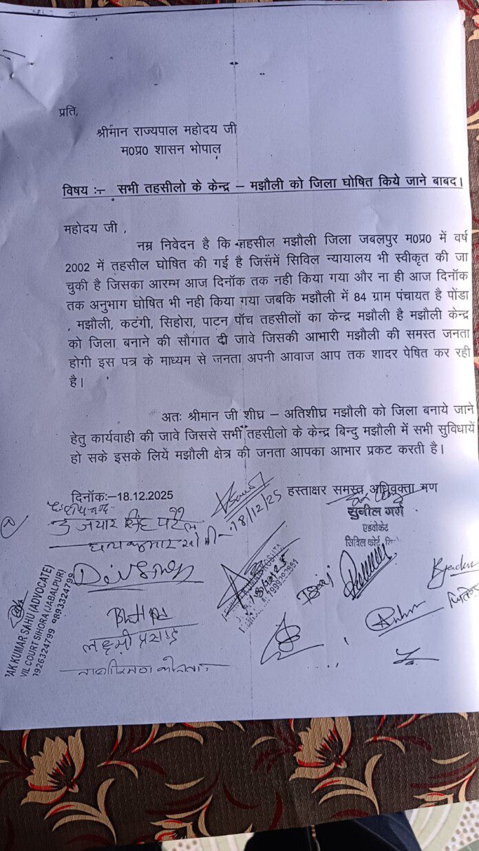 ज्ञापन में उल्लेख किया गया है कि मझौली को वर्ष 2002 में तहसील का दर्जा मिला था, बावजूद इसके आज तक न तो इसे अनुभाग घोषित किया गया और न ही स्वीकृत सिविल न्यायालय का संचालन प्रारंभ हो सका है।
