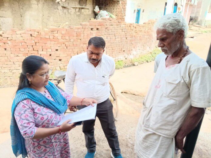किसानों से भेंट करके राजस्व अधिकारी बता रहे फार्मर रजिस्ट्री के लाभ