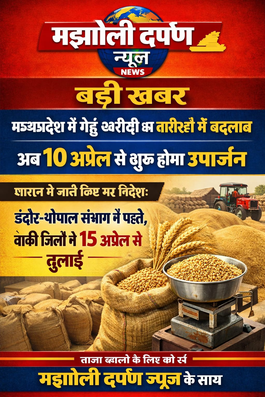 बड़ी खबर: मध्यप्रदेश में गेहूं खरीदी की तारीखों में बदलाव, अब 10 अप्रैल से शुरू होगा उपार्जन