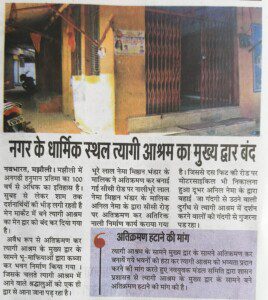 त्यागी आश्रम के यहा मुख्य द्वार के सामने अतिक्रमण कर बनायें गये भवनों को हटा कर त्यागी आश्रम को भव्यता प्रदान करने की मांग करते हुए