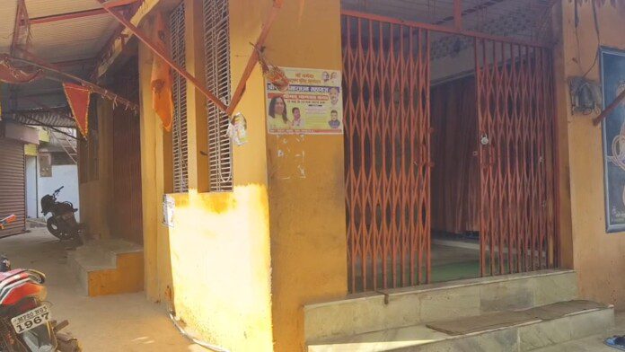 सुबह से लेकर शाम तक दर्शनार्थियों की भीड़ लगी रहती है मझौली के मेन मार्केट में बने त्यागी आश्रम के मेन द्वार को बंद कर दिया गया है।