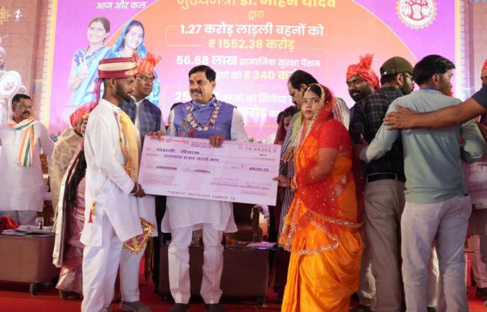 इस अवसर पर “मुख्यमंत्री कन्यादान योजना” के अंतर्गत आयोजित सामूहिक विवाह में 1100 नव दंपत्तियों को सुखमय जीवन के लिए आशीर्वाद दिया। हमारी सरकार प्रदेश के प्रत्येक वर्ग को सशक्त और समृद्ध बनाने हेतु ‘सबका साथ, सबका विकास’ के मंत्र के अनुरूप निरंतर कार्य कर रही है।
