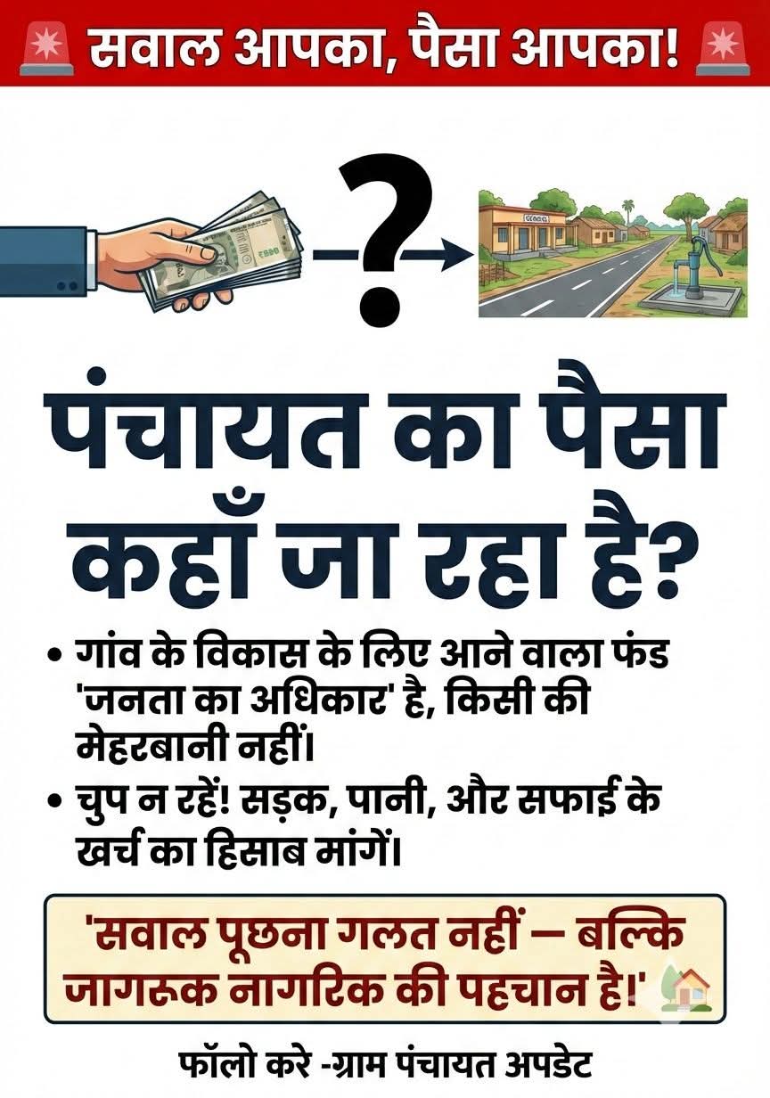 चुप्पी सबसे बड़ा भ्रष्टाचार जब नागरिक चुप रहते हैं, तभी गड़बड़ियां बढ़ती हैं। याद रखिए—सरकारी पैसा जनता का पैसा है। यदि आप अपने गाँव के विकास पर निगरानी नहीं रखेंगे, तो कोई और क्यों रखेगा?