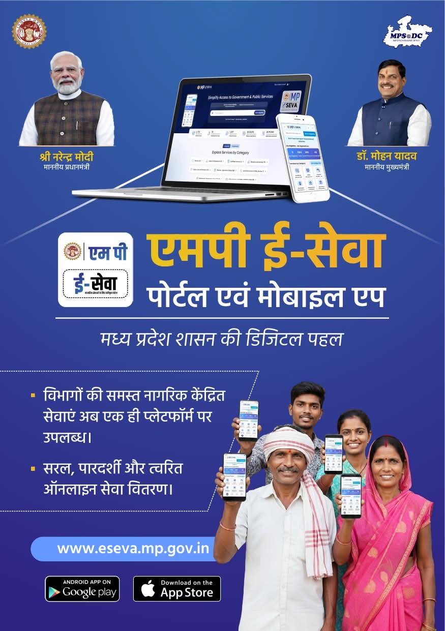 एमपी ई-सेवा पोर्टल एवं मोबाईल एप का मुख्यमंत्री डॉ. मोहन यादव द्वारा मध्यप्रदेश के स्थापना दिवस पर शुभारंभ किया था। इस एकीकृत नागरिक सेवा मंच पर राज्‍य शासन के सभी विभागों की सरकारी सेवाओं और योजनाओं को एक ही डिजिटल विंडो पर उपलब्ध कराया गया है।