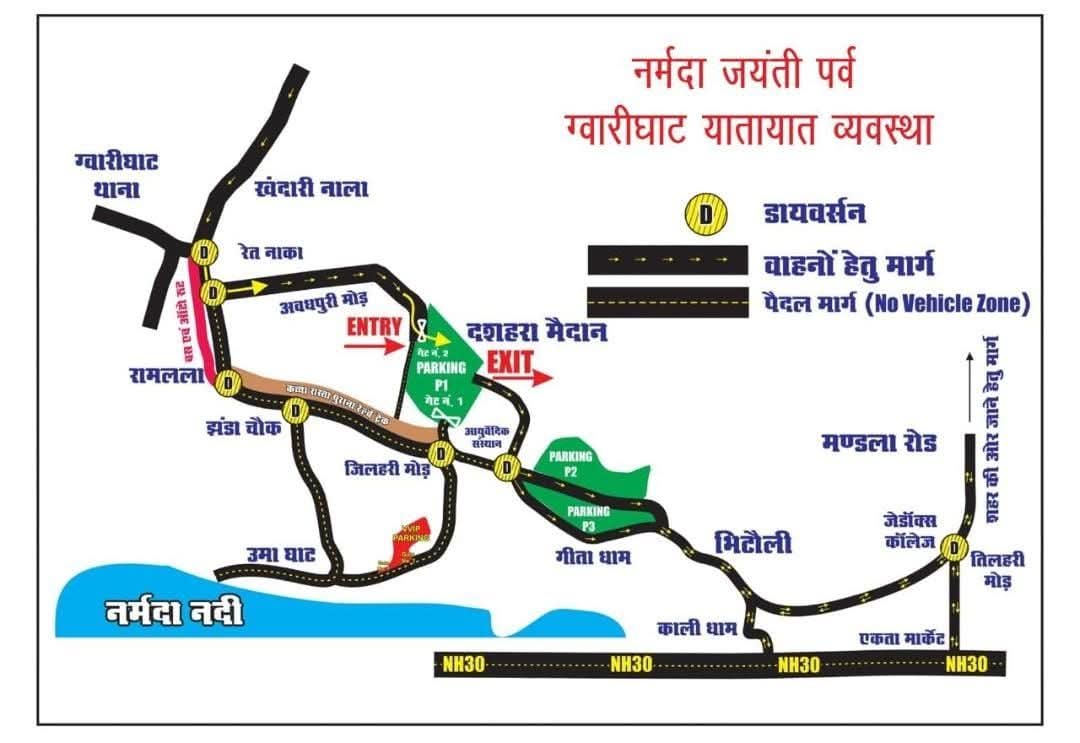 नर्मदा प्राकट्योत्सव पर्व दिनांक 04.02.2025 को ग्वारीघाट, भेड़ाघाट, तिलवाराघाट की यातायात, डायवर्सन एवं पार्किंग व्यवस्था