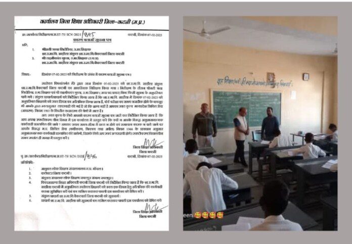 डी ई ओ ने संकुल प्राचार्य को निर्देशित किया है कि शा.उ.मा.वि. खड़ौला में शुक्रवार 7 फरवरी को अनुपस्थित दोनों शिक्षको को अनुपस्थिति दिवस का अवैतनिक किया जाता है।बोर्ड परीक्षा का समय नजदीक होने के बावजूद भी शिक्षकों के द्वारा लापरवाही की जा रही है ,जो क्षम्य नहीं है। जिला शिक्षा अधिकारी द्वारा दोनों शिक्षकों को कारण बताओ नोटिस जारी कर कहा है कि आपका उक्त कृत्य मध्यप्रदेश सिविल सेवा (आचरण) नियम 1965 के विपरीत कदाचरण की श्रेणी में आता है।