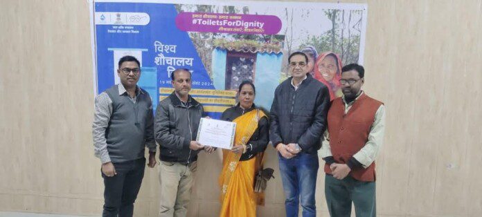 विश्व शौचालय दिवस के समापन पर सर्वश्रेष्ठ शौचालय हेतु जिला पंचायत अध्यक्ष श्रीमती मेहरा ने वीरेंद्र दाहिया को प्रमाण पत्र प्रदान कर किया सम्मानित