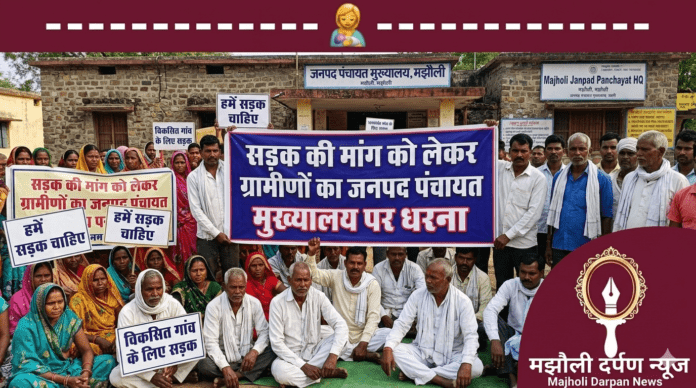 मध्य प्रदेश शासन के संस्कृति एवं पर्यटन मंत्री के विधानसभा क्षेत्र जवेरा के ग्राम बंदरकोला के ग्रामीण सड़क की मांग को लेकर मजबूर होकर जनपद पंचायत मुख्यालय पर धरने पर बैठ गए।