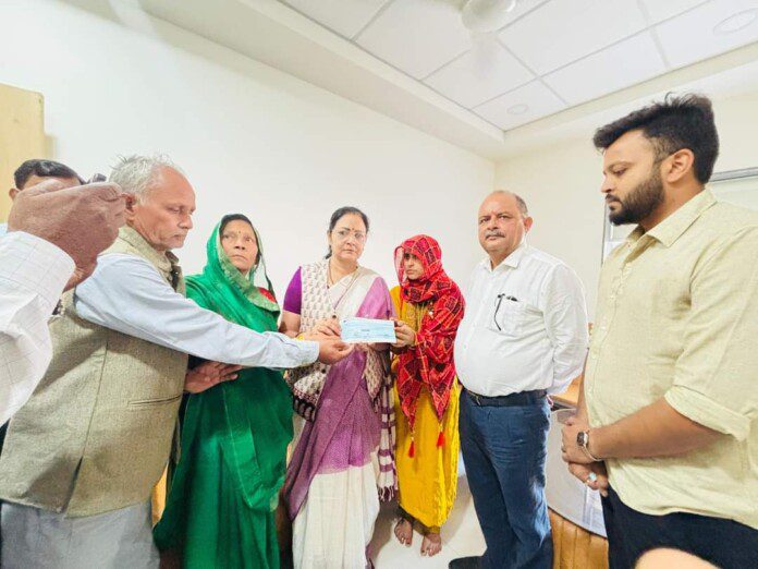 सांसद ने जवान के माता पिता को सौंपा मुख्यमंत्री स्वेच्छानुदान का 01 लाख रुपये का चैक