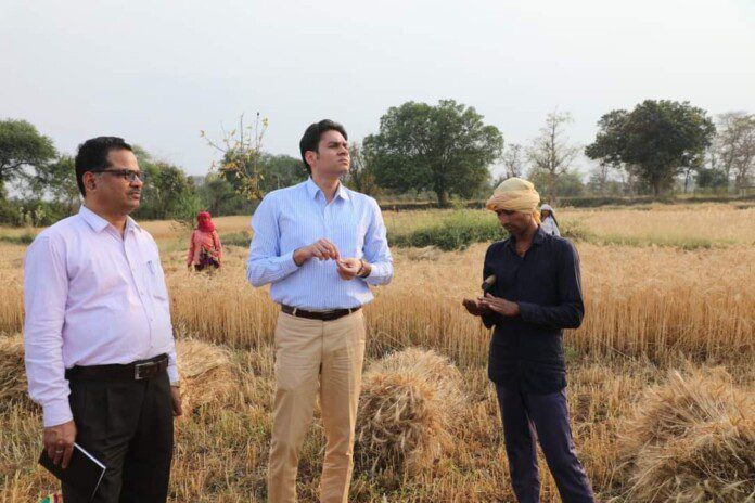 कलेक्टर अवि प्रसाद मतदान केन्द्र भदौरा नंबर एक का निरीक्षण करने के बाद रास्ते के गांव अमाड़ी में अकस्मात अपना वाहन रूकवाकर खेतों मे जा पहुंचे। यहां उन्होने गेंहूॅ की कटाई कर रहे किसानों से चर्चा की।
