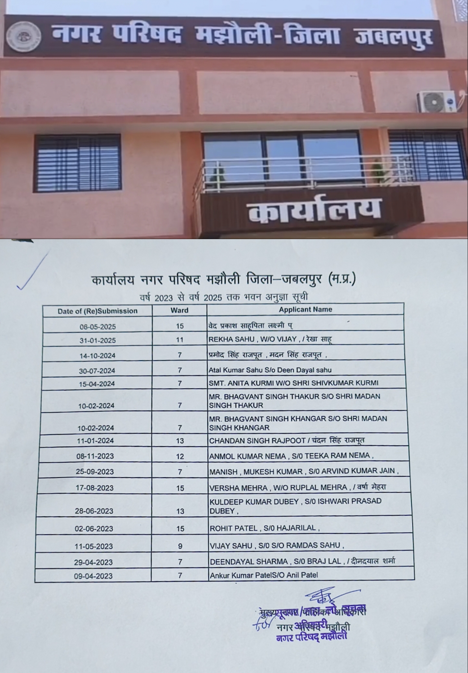 नगर परिषद कार्यालय मझौली से प्राप्त सूचना के अधिकार (RTI) के तहत जारी वर्ष 2023 से 2025 तक की भवन अनुज्ञा सूची ने नगर प्रशासन की कार्यप्रणाली पर कई सवाल खड़े कर दिए हैं।